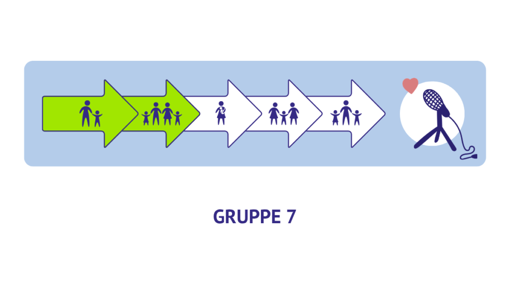 Um weiterhin so vielen Familien wie möglich gerecht zu werden, bündeln wir neue Bewerber:innen in Gruppen von jeweils fünf Familien. So können wir genau planen und kommen Schritt für Schritt den Aufnahmetagen näher. In der Grafik sehen Sie, wie viele Hörbücher bereits finanziert sind (grün markiert).